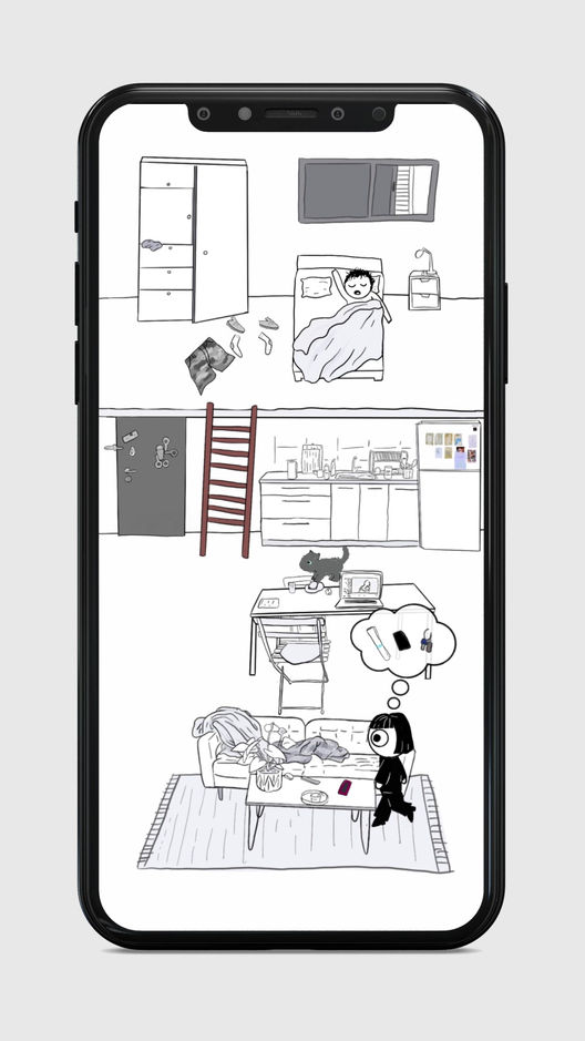 My final project at Bezalel Academy: A mobile game inspired by my comics page, delving into the life of an introverted character. Based on personal experiences, it humorously navigates awkward social situations encountered during my studies. The game simulates a day in the life of a student, with levels featuring scenarios like avoiding acquaintances and public speaking challenges.